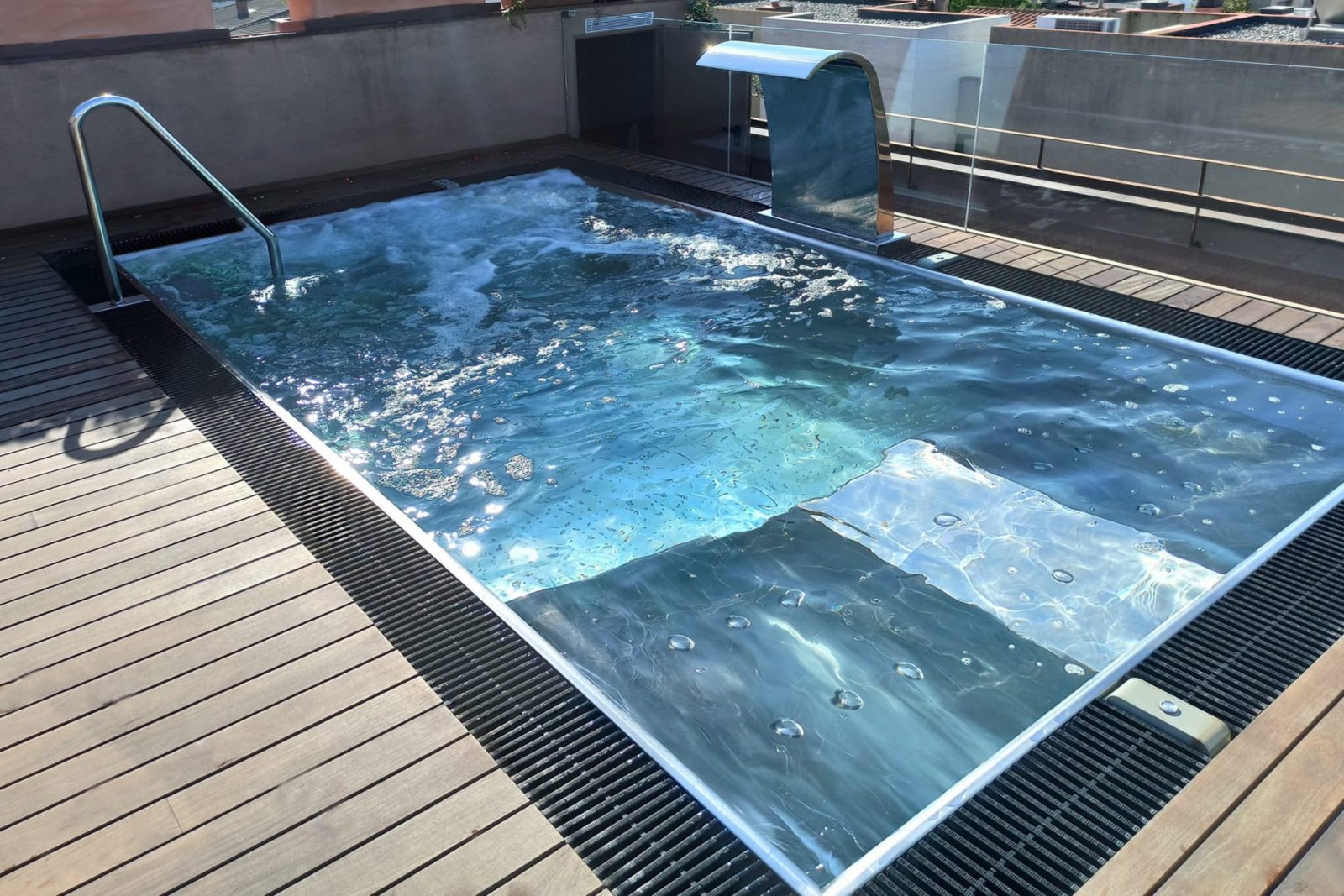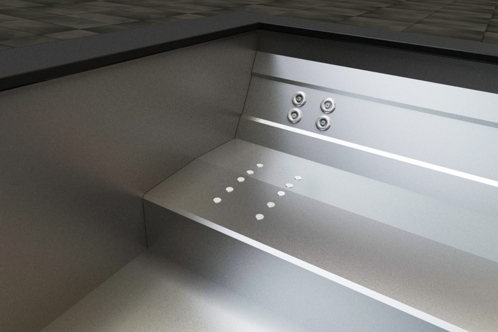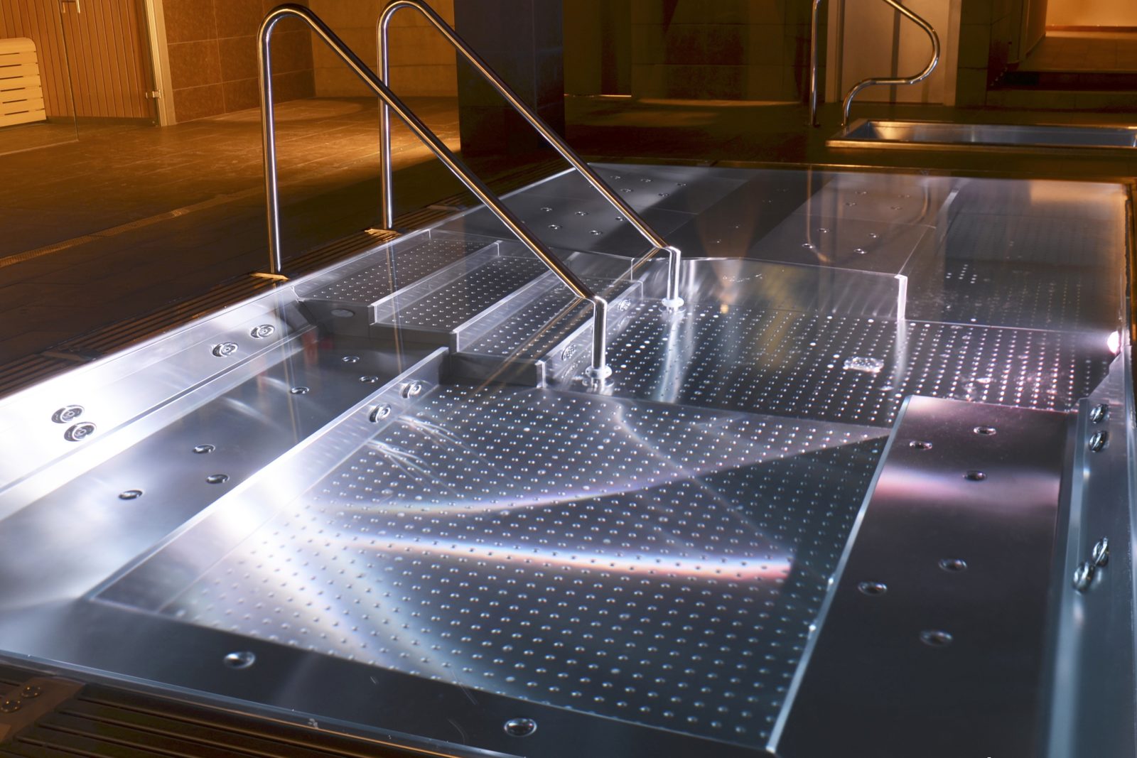 We use stainless steel for its elegance and durability in pool manufacturing. Our advanced systems ensure a flawless, shiny finish and reinforced structure to prevent deformation, creating watertight pools. We offer a variety of stainless steel pool models for wellness centers, hotels, gyms, and homes. Custom mosaic-tiled pools and portable spas are also available.